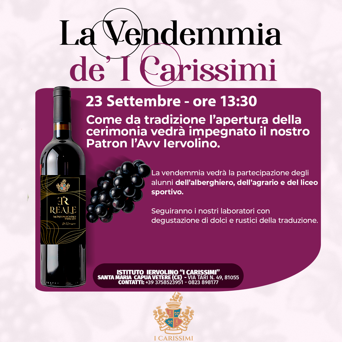 Quest’anno l’apertura della nostra vendemmia, come da tradizione, vedrà impegnato il nostro Patron l’Avv. Iervolino, che verserà la prima cassa di uva. Sarà una giornata indimenticabile, con la partecipazione degli studenti dell’Alberghiero, dell’Agrario e del Liceo Sportivo, che porteranno avanti il nostro impegno per la formazione e la valorizzazione del territorio.